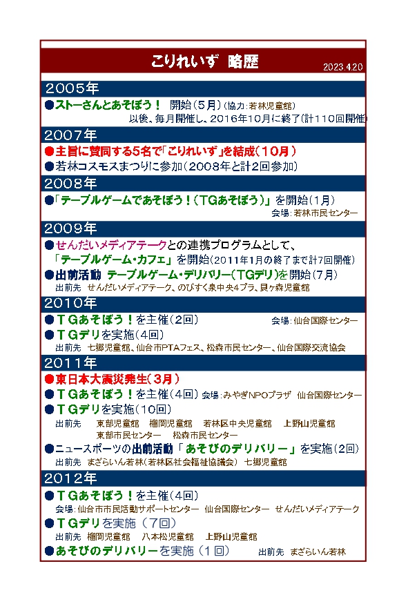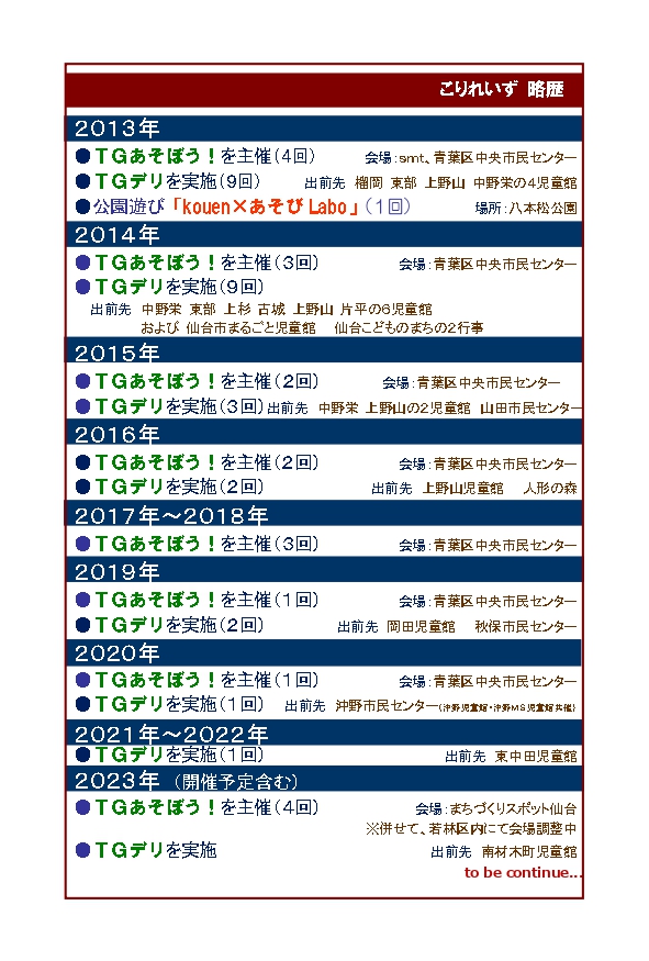 活動の予告・報告は Instagram(@korireizu) Facebook (@こりれいず仙台) でも確認できます。