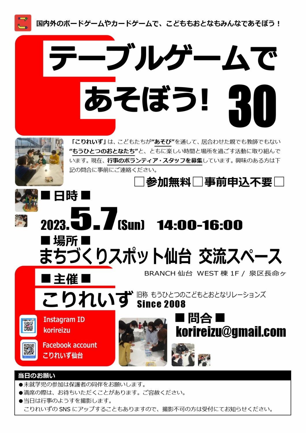 「テーブルゲームで遊ぼう!30」は、5/7開催!