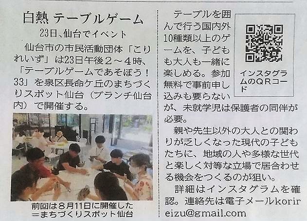 河北夕刊に掲載されたときに、こりれいずの情報の下に、「シブリングサポーター研修」の情報が掲載されていた。